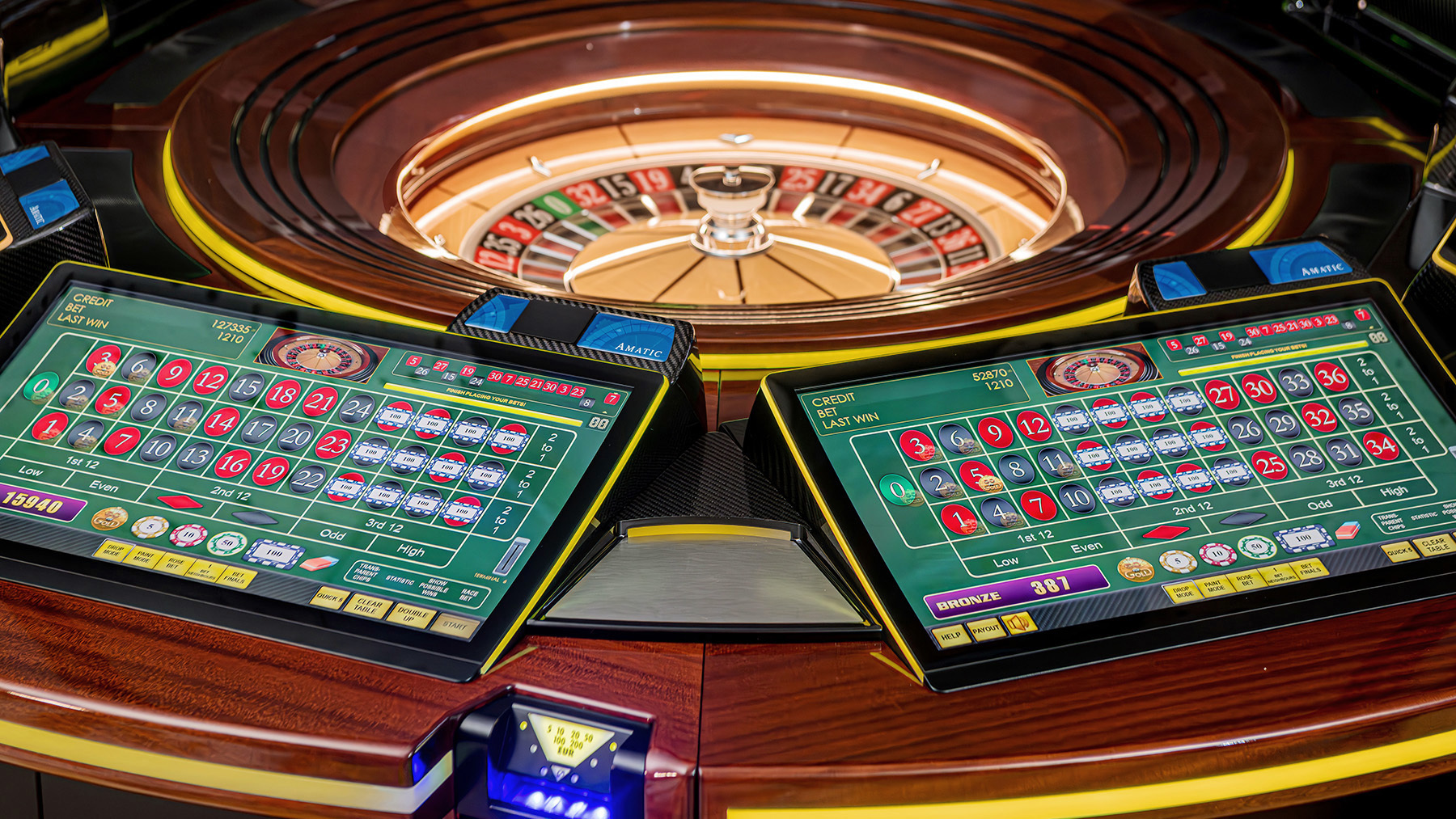 Roulette Grand Jeu Curved is the ultimate electronic roulette solution from AMATIC. It enables players to participate in a live roulette game from the privacy and comfort of individual video terminals. The Grand Jeu Curved configuration provides space for up to 8 players around the table. Furthermore it can be connected with numerous terminals and devices to allow many more players to join the live roulette. With its beautiful design, made of the finest materials and incorporating only the best electronic components, the Grand Jeu Curved is built for 24/7 play.