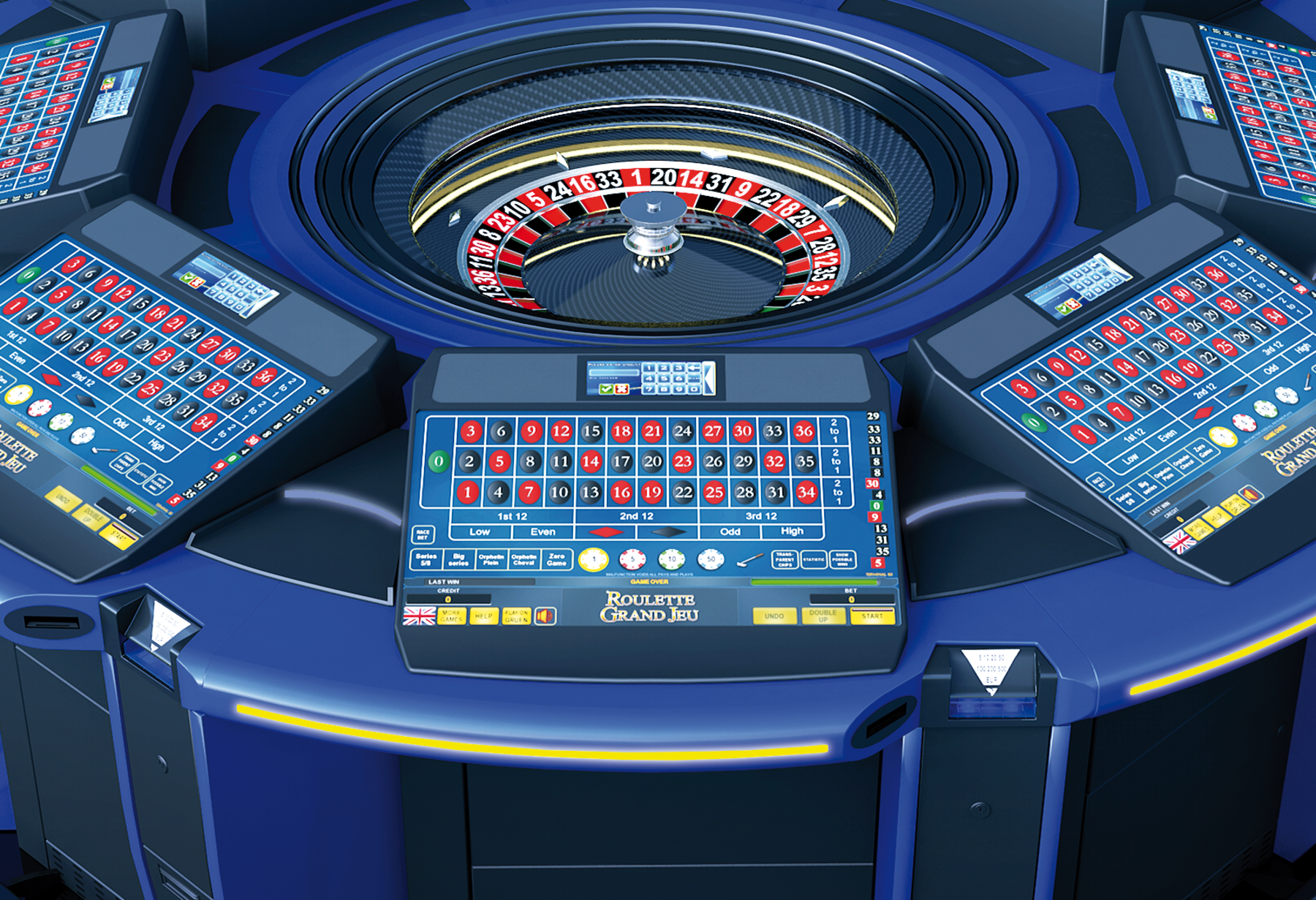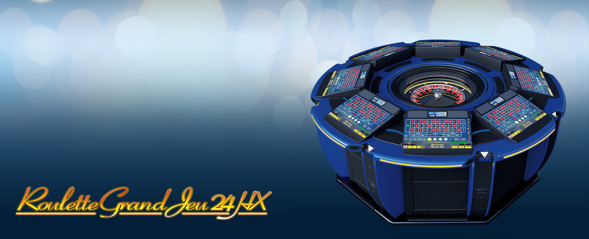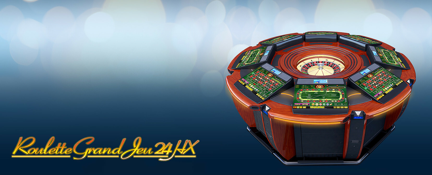Roulette Grand Jeu 24HX 8 is the ultimate electronic roulette solution from AMATIC. It enables players to participate in a live roulette game from the privacy and comfort of individual video terminals. The 24HX configuration provides space for up to 8 players around the table. Furthermore it can be connected with numerous terminals and devices to allow many more players to join the live roulette. With its beautiful design, made of the finest materials and incorporating only the best electronic components, the Grand Jeu 24HX is built for 24/7 play.